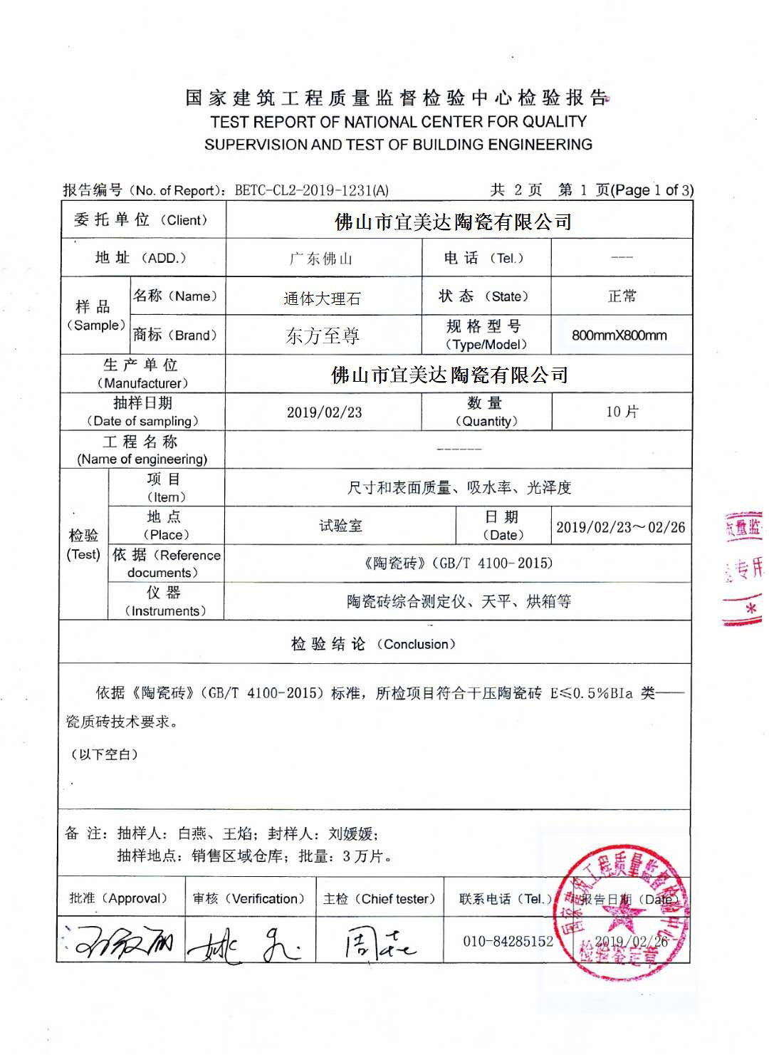 國家陶瓷及水暖衛(wèi)浴產(chǎn)品檢驗(yàn)報(bào)告